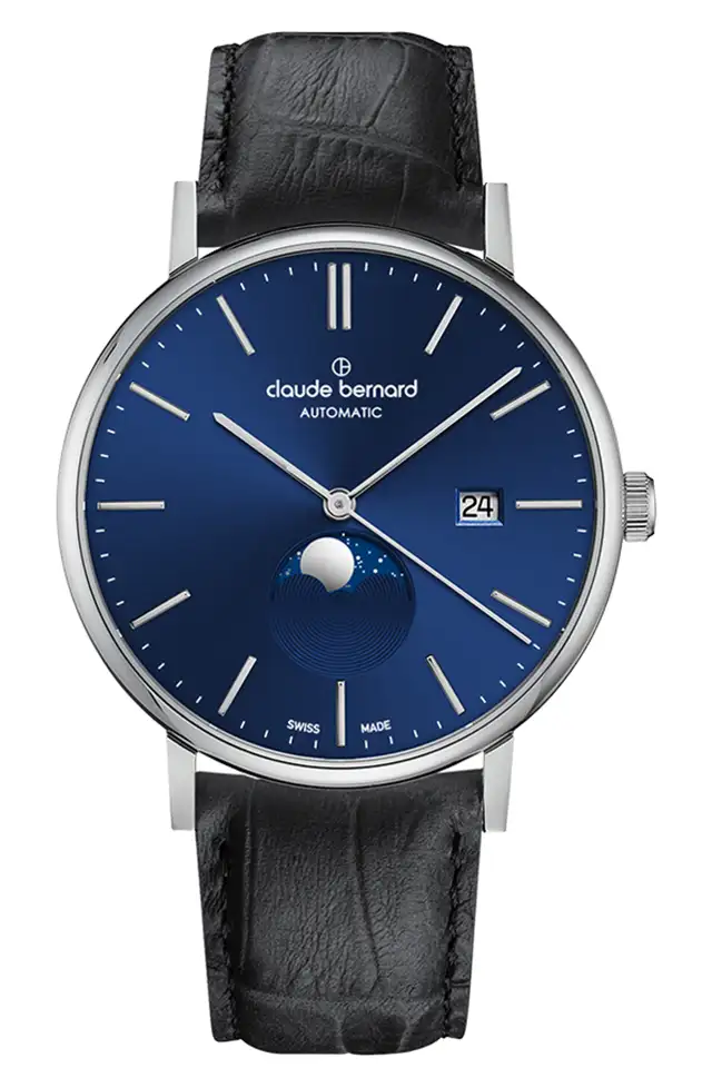 El Claude Bernard Slim Line Automatico, dotado de un exclusivo movimiento ultraplano Moon Phase con calendario. Diseño exquisito; elegante y distinguido siempre. CB se caracteriza por diseños ùnicos que muestran el arte de sus relojeros suizos. El reloj que distingue al que lo usa