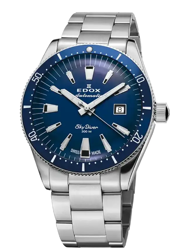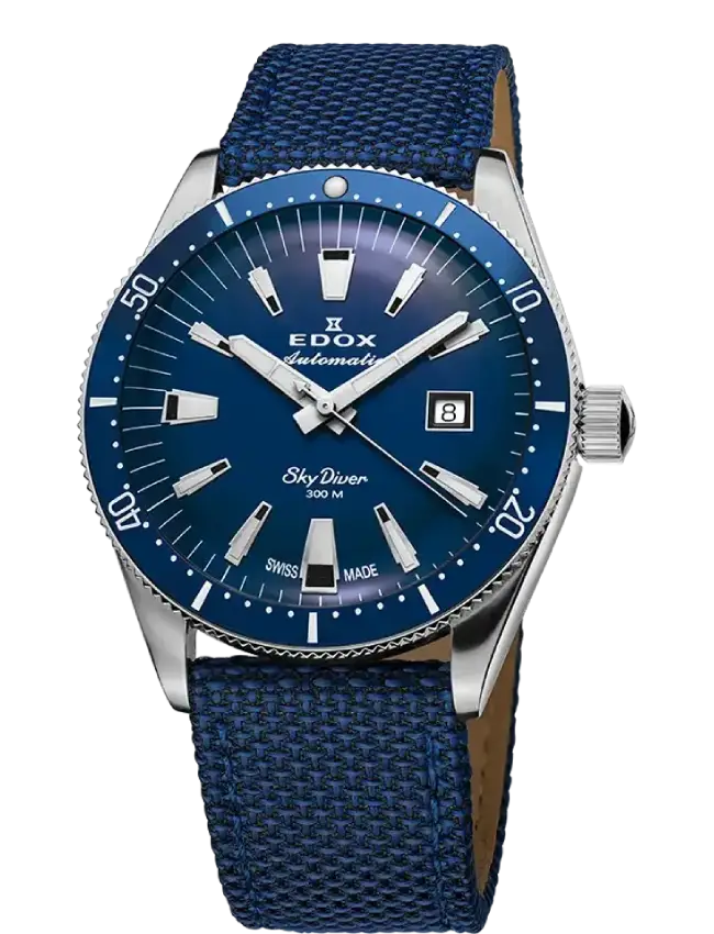 Características: doble junta tórica patentada por Edox. Aguja e índices luminiscentes.