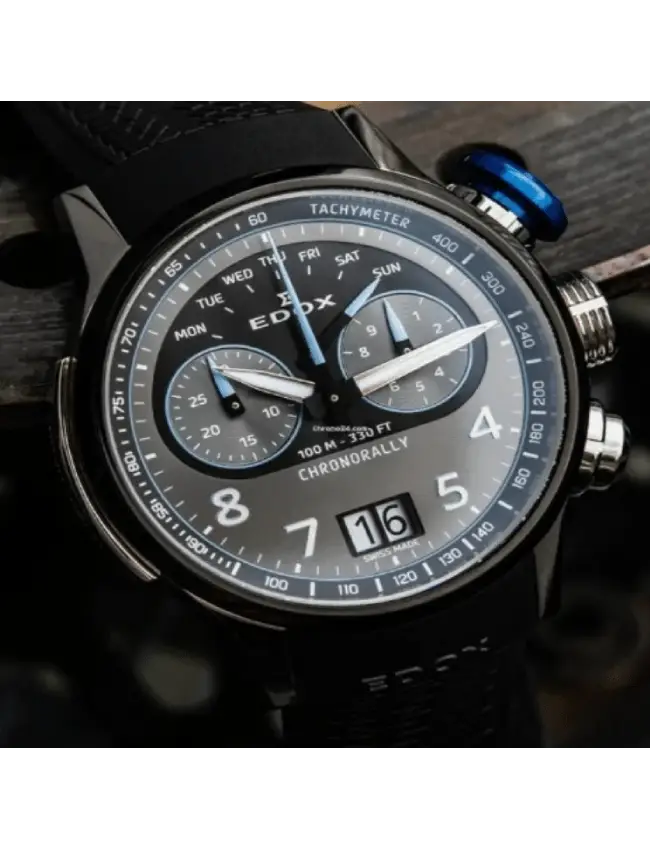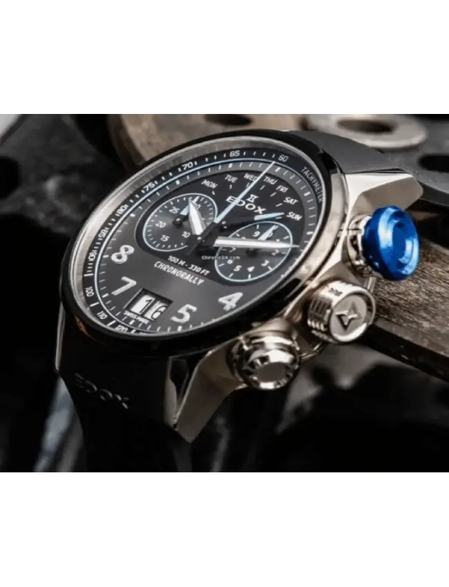 Ya sea compitiendo en un rally, en el Dakar, en la Formula 1 o al volante de un BMW de competicion, la precision es fundamental. el Edox Chronorally tiene todo lo que el corredor de automoviles o el amante de la velocidad necesita. Su caja ultraliviana de Titanio Gr5, lo hace confortable en la muñeca. Sus pulsadores sobredimensionados; su fondo de caja similar a la llanta de los automoviles de competicion o su correa de caucho con pattern de banda de rodamiento hacen que el Edox Chornorally sea un autentico Driver´s Instrument