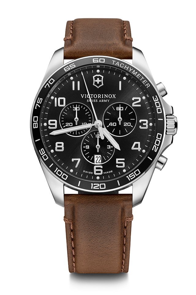 Atrévete a esforzarte con el reloj que se trata de forjar nuevas fronteras. Basado en su ADN de navaja suiza, este diseño mejorado es lujoso pero decididamente masculino. Los colores refinados y los índices curvos hacen una declaración de estilo, y los números llamativos y las manecillas de buen tamaño ofrecen una excelente legibilidad. La correa de piel flexible está rematada con una hebilla desplegable.
