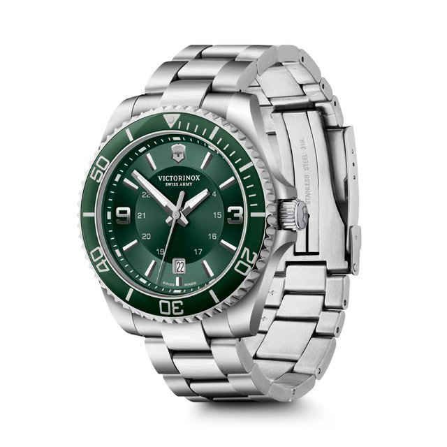 Bisel giratorio unidireccional con incrustación de cristal de zafiro verde