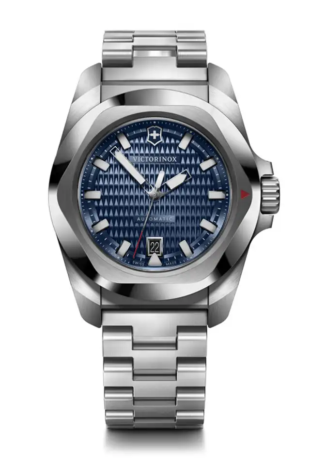 El I.N.O.X. automatic es un reloj de excelencia absoluta. Su caja de acero inoxidable o de fibra de carbono demuestra la excelencia de la marca en el manejo de los materiales. su tapa de caja transparente deja vislumbrar un preciso movimiento automático. Su esfera nos muestra el tipico patrón Alox de la navaja Victorinox. Su bisel icónico identifica una colección de relojes única. El I.N.O.X. Automatic es una auténtica pieza relojera de excelencia