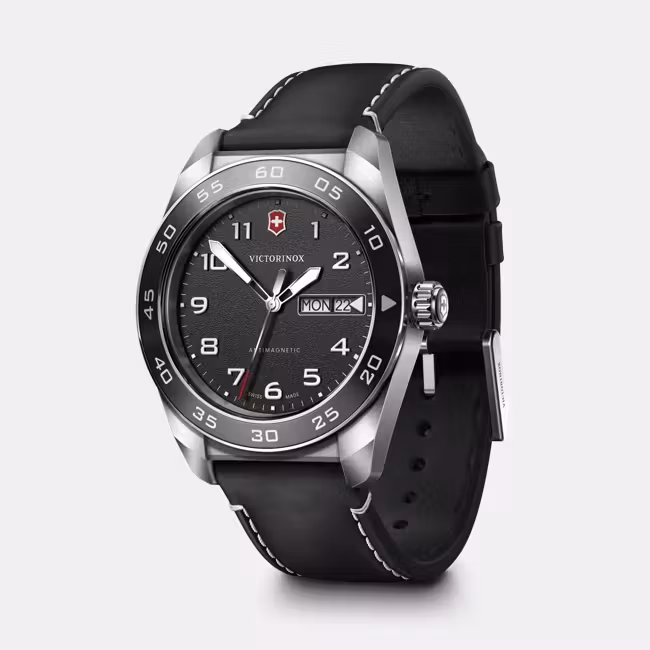 Simplicidad funcional en un reloj. El Swiss Army Quartz es tu aliado en todas las aventuras al aire libre. Pragmático, pero novedoso en su ADN de diseño, se integra a la perfección en cualquier situación con su ingeniería confiable y tecnicidad pionera. La esfera optimizada con numerales con relieve y manecillas grandes SuperLuminova® iluminadas aseguran fácil legibilidad las 24 horas. El movimiento de día y fecha de cuarzo analógico Ronda 517 establece un meticuloso estándar para la organización del calendario y la precisión del reloj. Suma su incomparable precisión a tu vida.