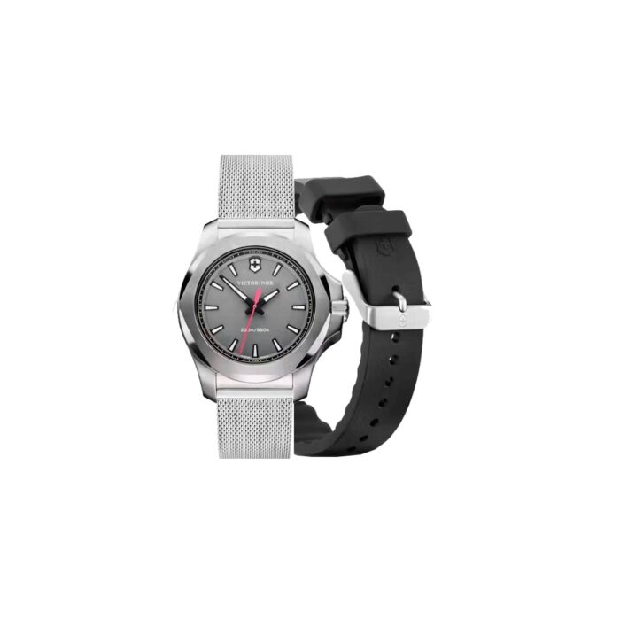 El I.N.O.X. automatic es un reloj de excelencia absoluta. Su caja de acero inoxidable o de fibra de carbono demuestra la excelencia de la marca en el manejo de los materiales. su tapa de caja transparente deja vislumbrar un preciso movimiento automático. Su esfera nos muestra el tipico patrón Alox de la navaja Victorinox. Su bisel icónico identifica una colección de relojes única. El I.N.O.X. Automatic es una auténtica pieza relojera de excelencia
