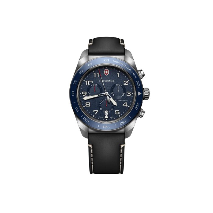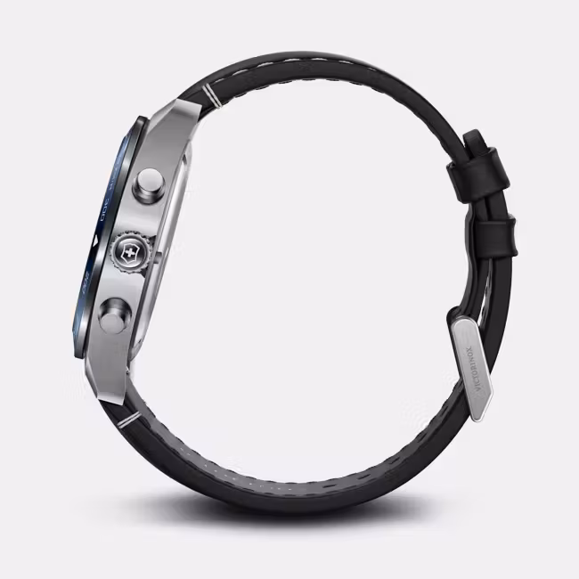 Atrévete a esforzarte con el reloj que se trata de forjar nuevas fronteras. Basado en su ADN de navaja suiza, este diseño mejorado es lujoso pero decididamente masculino. Los colores refinados y los índices curvos hacen una declaración de estilo, y los números llamativos y las manecillas de buen tamaño ofrecen una excelente legibilidad. La correa de piel flexible está rematada con una hebilla desplegable.